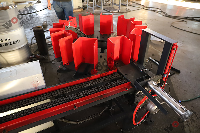 3、锚杆托盘液压机生产线由四柱液压机、锚杆托盘成型模具、全自动上料装置、推料装置、成品收集装置等组成,并包含相应的电控系统和动力系统。